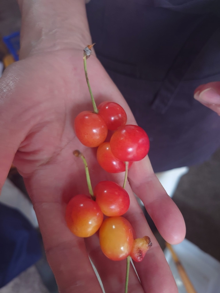 7/08(月)村山市甑岳の麓の地区で、今年最後のさくらんぼに出会った❗ 高温障害で記録的な被害を受けて大変だったさくらんぼ 。