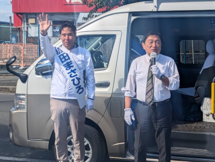 衆議院議員選挙公示初日10/15。 第一声の後、昼過ぎまで、原田まさひろ候補(立憲民主党)とともに、山形市内でおかしな政治を変えようと訴えました。