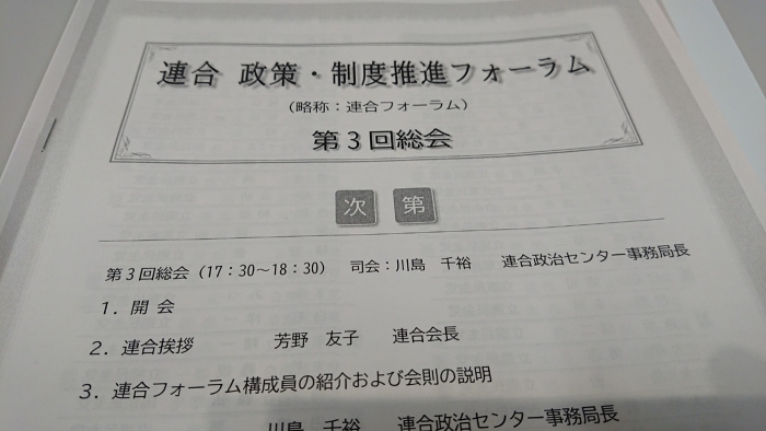 3/1(火) 夕方からは、都内シェーンバッハ・サボーで開かれた「連合政策・制度推進フォーラム」に出席しました。