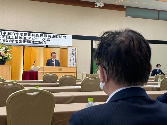 5/26(木)朝、日本海沿岸地帯振興促進議員連盟総会に出席しました。舟山やすえさんもご出席でした。