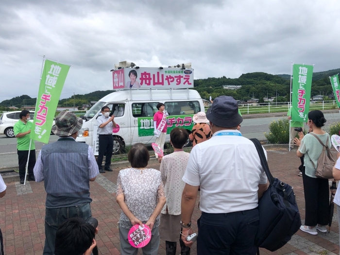 7/9(土)午前 山形市蔵王地区ぐっと山形での舟山やすえ街頭演説❗こちらでも、たくさんの皆さんが詰めかけて下さいました。
