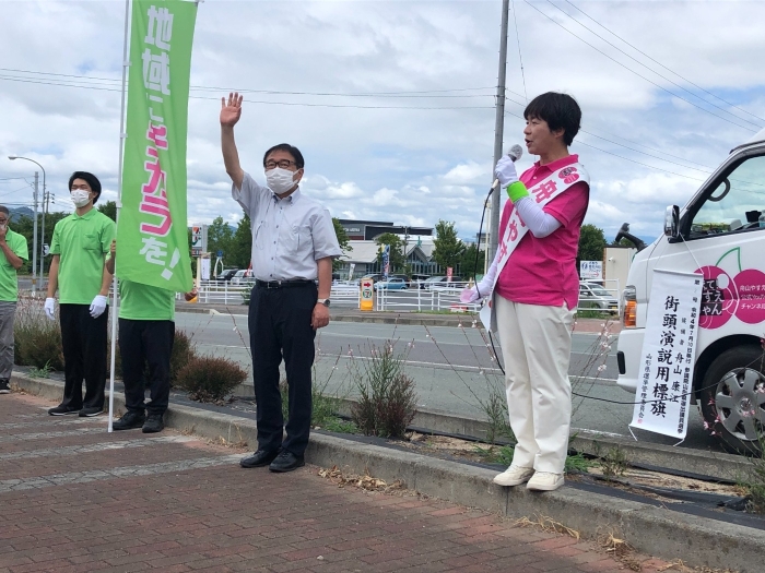 7/9(土)午前 山形市蔵王地区ぐっと山形での舟山やすえ街頭演説❗