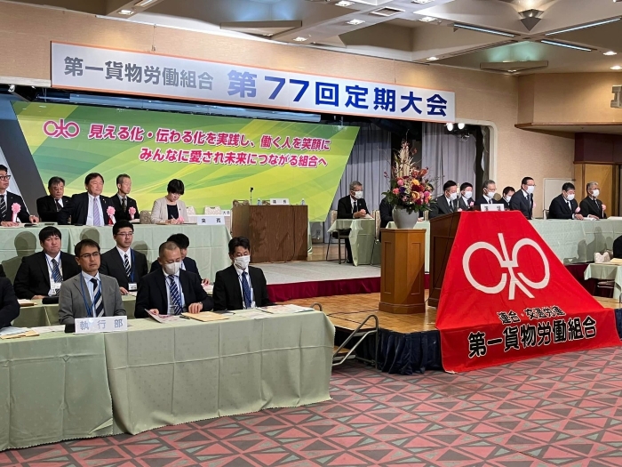 10/21(土) 上山市内で4年ぶりの通常開催となりました第一貨物労働組合の「第77回定期大会」に参議院議員 舟山やすえ さん、山形市議会議員 渋江ともひろさんと共に来賓としてお招き頂き、御挨拶をさせて頂きました。