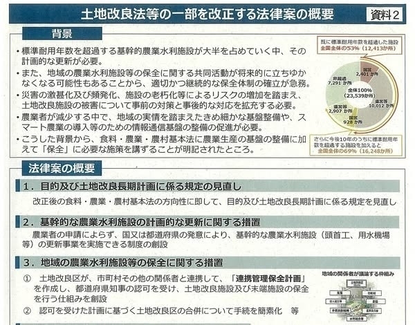 …などが規定されています。この法改正が進むと土地改良区の現場でも「やらねばならないこと」が増えることになりそうです。