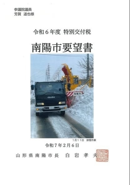 2/6(木)午後、南陽市の白岩孝夫市長が要望に参議院議員会館に来所。