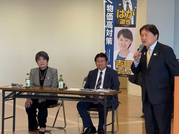 5/31(土)竹俣朋山辺町議会議員と村山幸一山辺町議会議員で結成されております、やまのべの未来を語る会のゲストとしてお招き頂き、お二人の町政報告後に国政報告やトークセッションを通じての意見交換などをさせて頂きました。