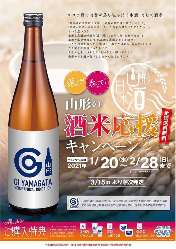 飲んで・送って応援すっべ‼️ 県内40の蔵の県産酒米100%の自慢の県産酒を選べるセットが、申込締切、2月末まで全国送料無料です‼️ しかも、グラスなど選べる特典付きです。