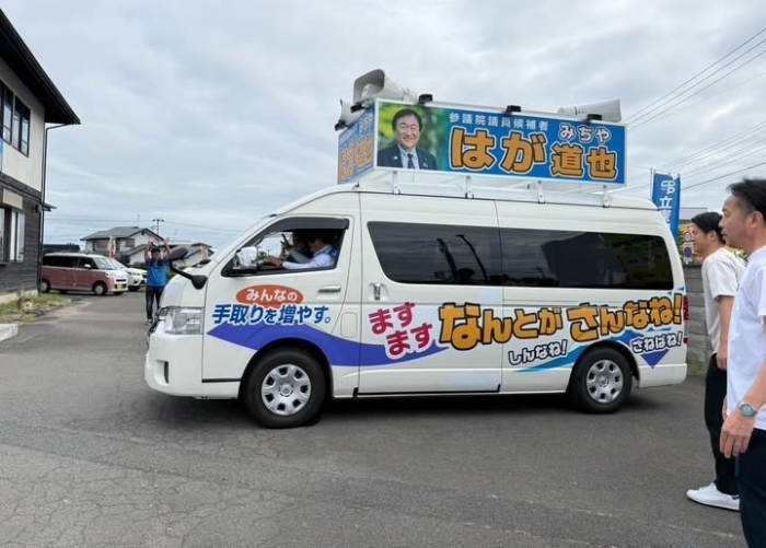 2025年07月12日 7/12(土)参議院選挙10日目。 はが道也、元気に出発。 7/12(土)参議院選挙10日目。 はが道也、元気に出発。 投票日は7/20(日)ですが、ぜひ期日前投票で早めに投票をお願いします。 山形県では、はが道也に「ガソリンを下げる1票」をお願いします❗️ 国民の声、衆議院では通ったガソリン暫定税率廃止法案を潰した 参議院自民党の議席が、増えてしまったら大変です⁉️ 衆議院のように、 国民の声が通る参議院を実現するために、投票に行きましょう。 大激戦、厳しい闘いです。 お力をお貸しください。