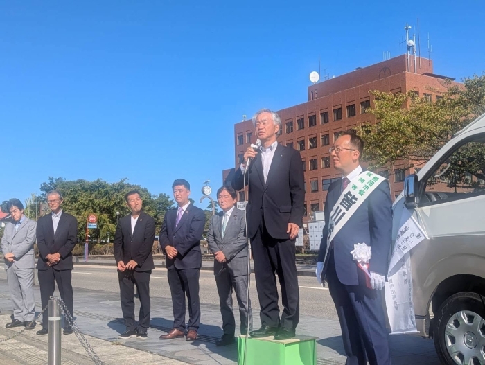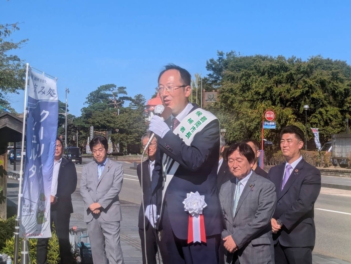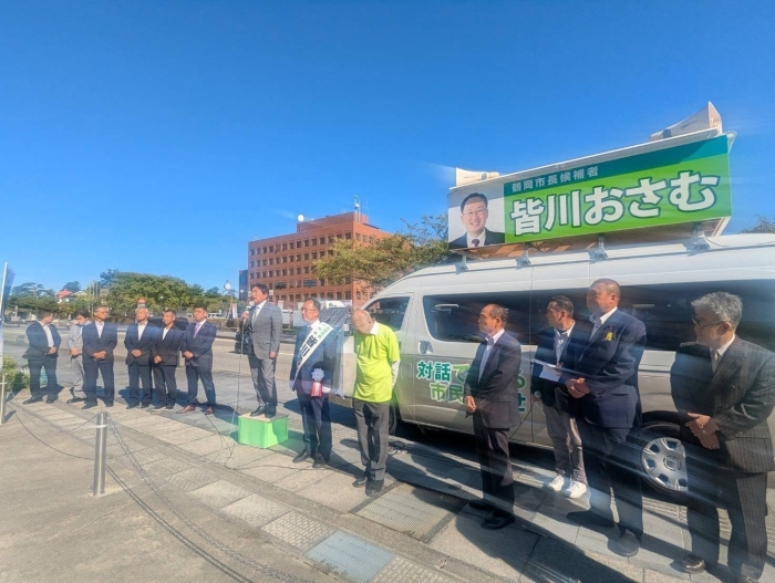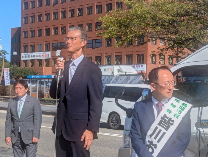 9/28(日)鶴岡市長選挙がスタート❗️ 無所属・市民党3期目を目指す現職 皆川おさむ候補の街頭での選挙戦第一声をわたくしはが道也も熱烈応援!