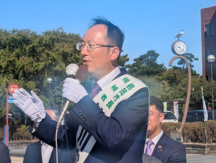 無所属・市民党3期目を目指す現職 皆川おさむ候補の街頭での選挙戦第一声をわたくしはが道也も熱烈応援!