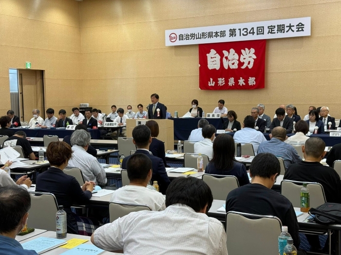 2025年09月30日 9/30(火)am、自治労山形県本部 第134回定期総会に来賓としてお招き頂き御挨拶をいたしました。 9/30(火)am、自治労山形県本部 第134回定期総会に来賓としてお招き頂き御挨拶をいたしました。 今夏、ともに闘いました自治労組織内議員 岸まきこ参議院議員も会場に駆けつけておりました。