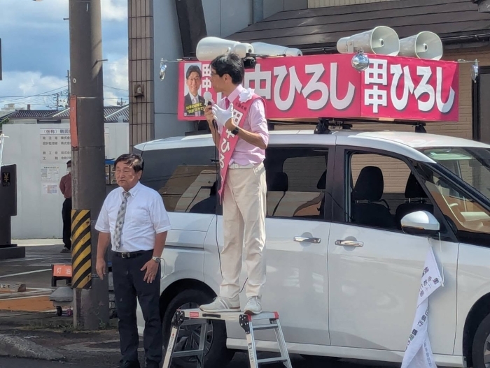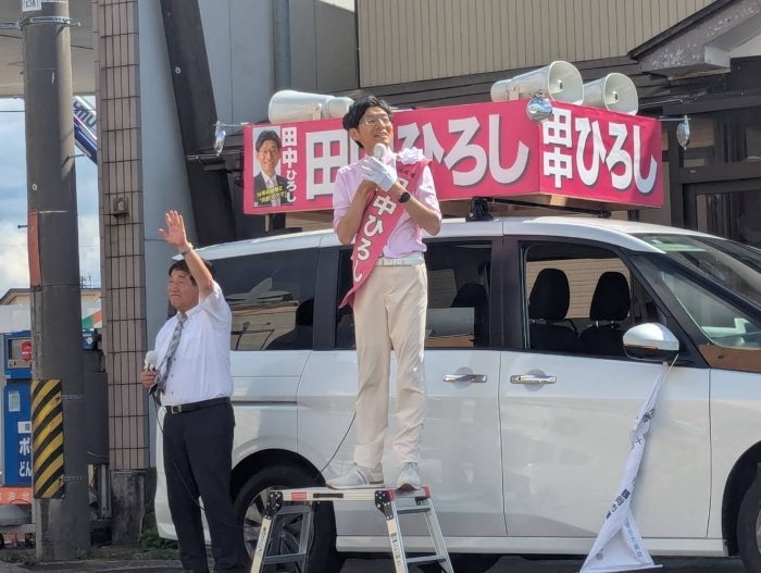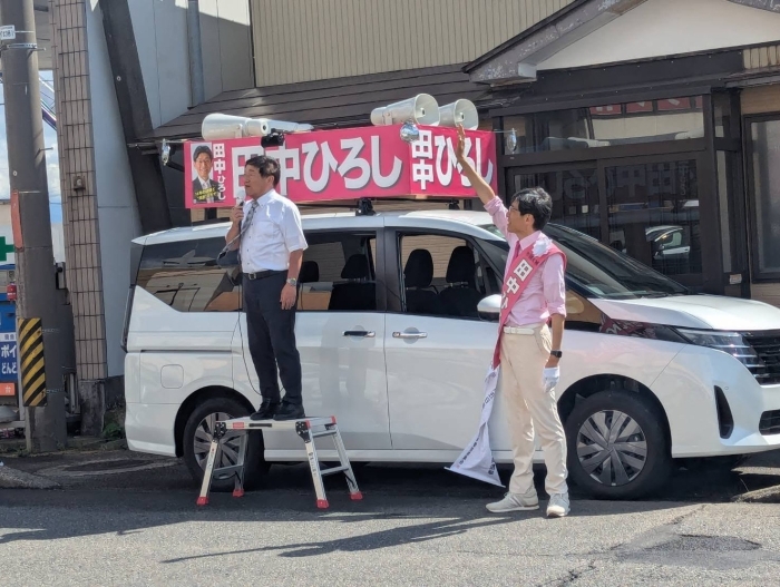 鶴岡市長選挙を応援しながら午前中は、鶴岡市議会議員選挙 田中ひろし議員の街頭演説も応援。