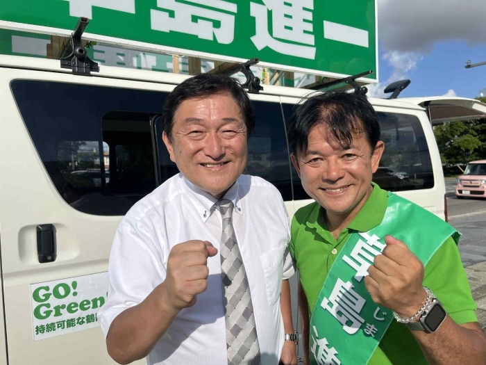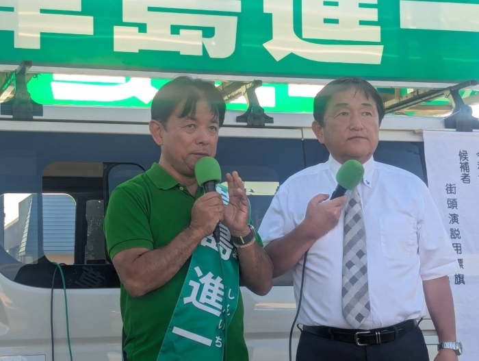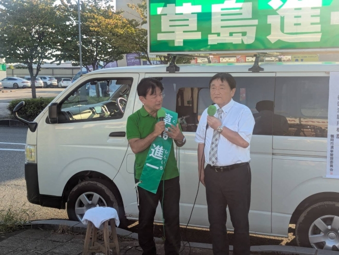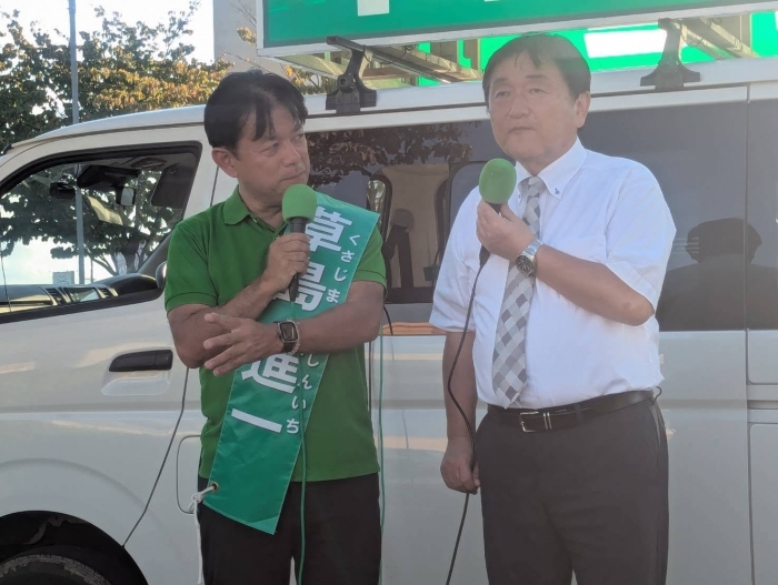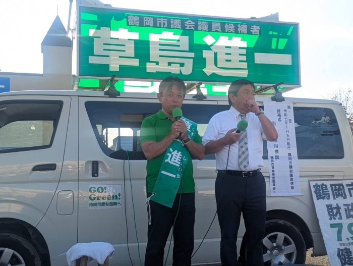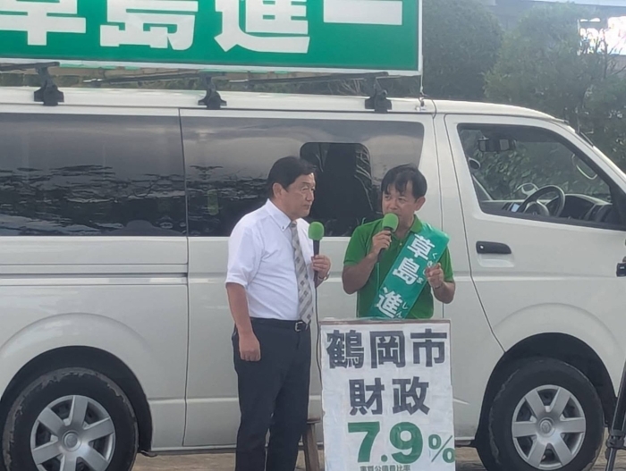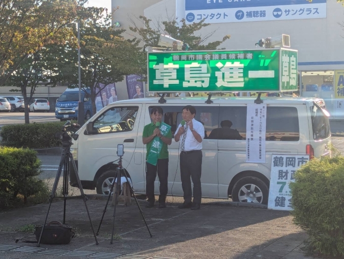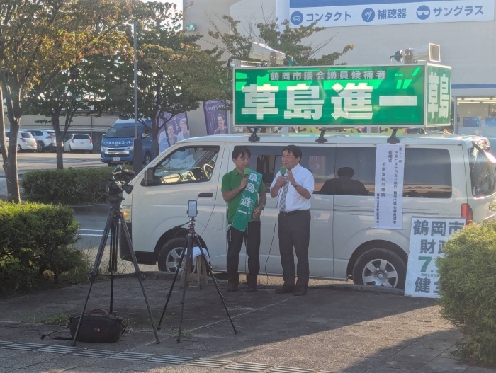 10/2(木)午後2時と4時、鶴岡市役所鶴岡パル前では草島進一市議と共に街頭でトーク。