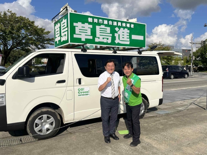 10/1(水)昼、鶴岡市へ入り、鶴岡市議会議会選挙二期目を目指すなんば純候補の応援❗️
