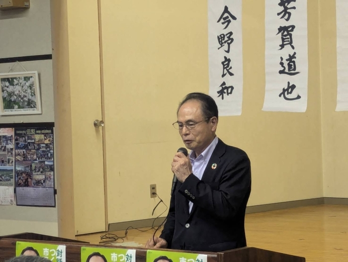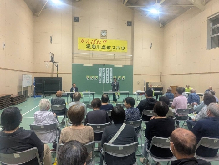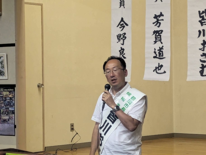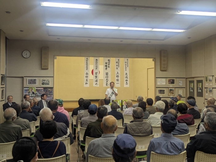 10/2(木)夕方からは鶴岡市長選挙 旧温海町温海川地区と越沢地区で行われた現職で3選を目指す皆川おさむ候補の個人演説会❗️