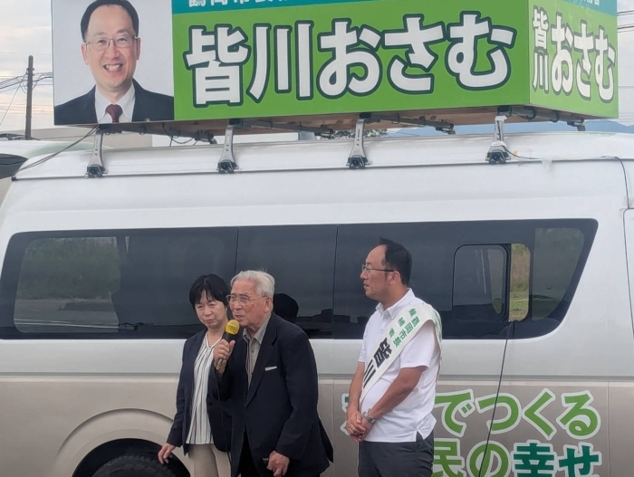 今日も8年間、嘘と反対ばかり、足を引っ張り続ける全く市民のために働かない市議会最大会派に、呆れ果て、自民党を離れたお一人 本間信一鶴岡市議会議員に続き、無所属はが道也も国民民主党の舟山康江さんも松浦元県議会議長も素晴らしい実績、小さい者の声を聞く、皆川市政を守ろう‼️と熱く訴えた。