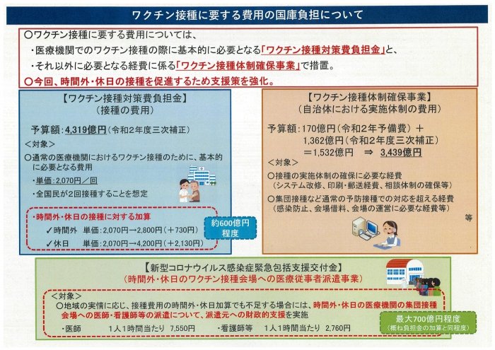 群馬県太田市の清水聖義(しみず・まさよし)市長に総務省交付税課長から電話があったとも報じられています。交付税課長から電話があるということなら「7月にワクチン接種を終えないと特別交付税を減らすぞ」という無言の圧力がかかっていたおそれもありますが、ワクチン接種関係の補助金・交付金は全て厚生労働省から出るもので、総務省からはナシというご説明でした。