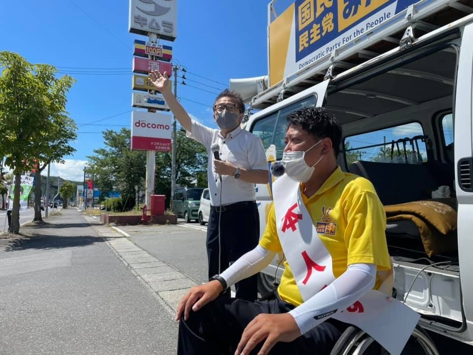 2021年08月07日 国民民主党衆議院山形県第2区総支部長の加藤けんいちさんと、高畠町と川西町での街宣活動に参加しました。 国民民主党衆議院山形県第2区総支部長の加藤けんいちさんと、高畠町と川西町での街宣活動に参加しました。 川西からは舟山やすえ参議院議院も合流、加藤けんいちさんのお父様は、川西町ご出身とあって、広~いコンバインや乾燥機を収納する倉庫に、十分な距離を取って、人数を限定し空飛ぶ車椅子社長の思いと政策を聞いて頂きました‼️