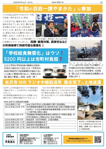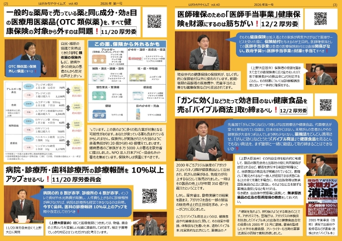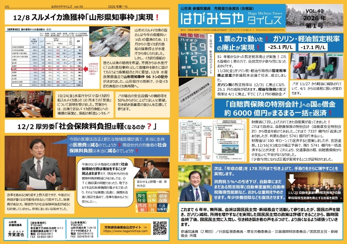 PDF はがみちやタイムズ バックナンバー vol.41|2026.1 |PDFダウンロード vol.40|2026.1 <新年号>|PDFダウンロード vol.38|2025.6|PDFダウンロード vol.37|2025.1 <新年号>|PDFダウンロード vol.36|2024.12 <年金特集号>|PDFダウンロード vol.35|2024.10<災害特集号>|PDFダウンロード vol.34|2024.8 <飛島 特集号>|PDFダウンロード vol.33|2024.7 <不動産・税金 特集号>|PDFダウンロード vol.32|2024.6 <通常国会後半号>|PDFダウンロード vol.31|2024.6 <医療医薬品 特集号>|PDFダウンロード vol.30|2024.5 <事故車両修理費用 特集号>|PDFダウンロード vol.29|2024.3 <2024春号>|PDFダウンロード vol.28|2024.1 <2024新年号>|PDFダウンロード vol.27|2023.12 <医療・医薬品特集 号>|PDFダウンロード vol.26|2023.秋冬<参議院議員 4周年号>|PDFダウンロード vol.25|2023.8 <マイナンバー特集 号>|PDFダウンロード vol.24|2023.5 <医療介護特集 号>|PDFダウンロード vol.23|2023.5 <5月 号>|PDFダウンロード vol.22|2023.2 <通常国会本会議質問 号>|PDFダウンロード vol.21|2023.1 <医療特集号>|PDFダウンロード
